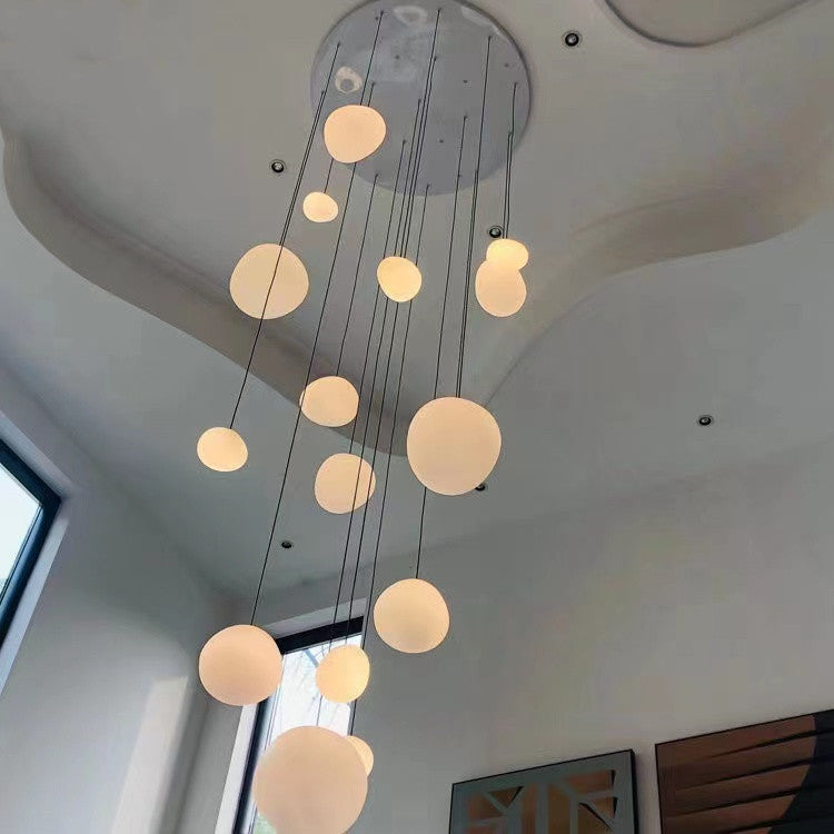 Modern Minimalist Pebble Shaped Glass Pendant Light – Creative Frosted Stone Hanging Lamp for Staircases, Lofts, and Living Rooms (Bespoke Combination Available)